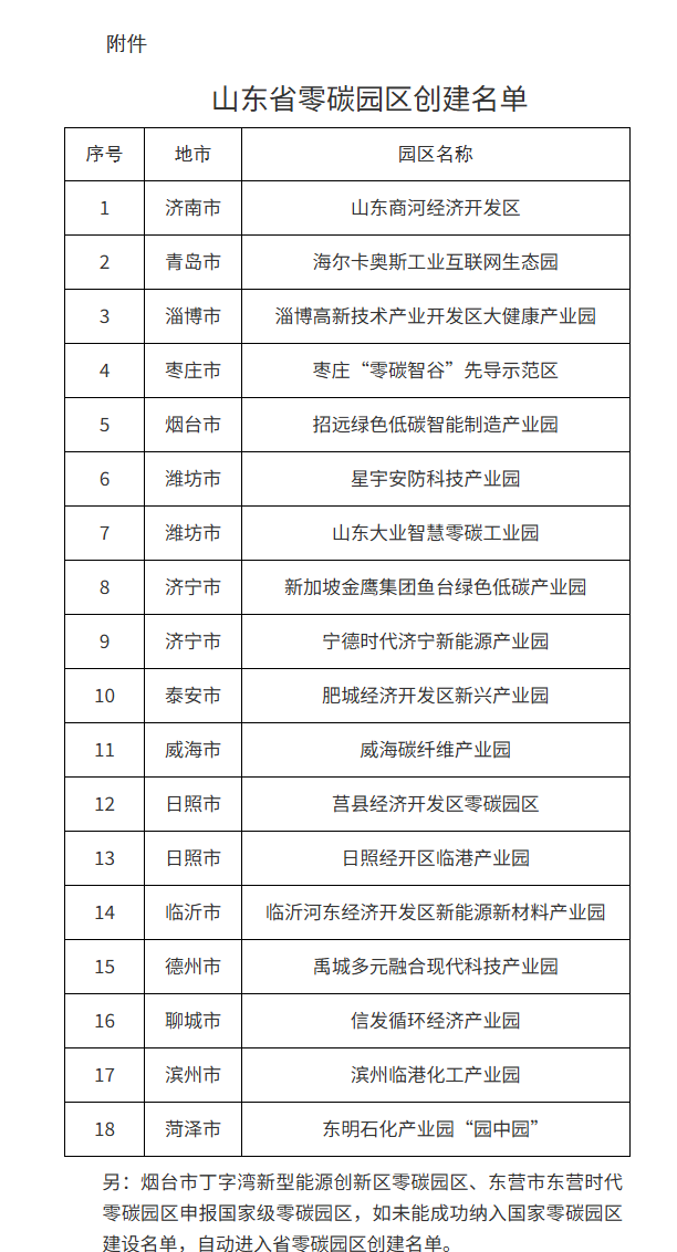 根据《关于印发<山东省零碳园区建设方案>的通知》(鲁发改环资〔2025〕512号)要求,经评审,现将山东省零碳园区创建名单予以公布(见附件)。