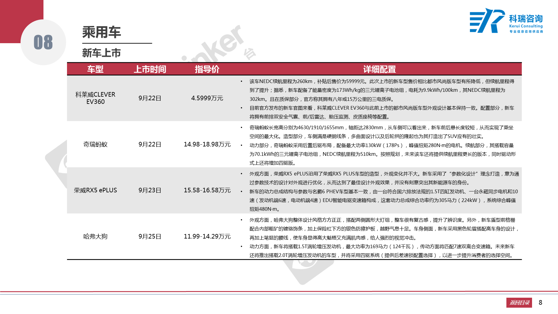 【科瑞咨询】中国汽车产业调查总第0692期(2021年9月13日-9月19日)