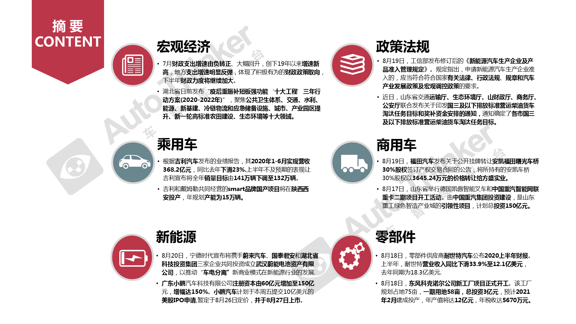 【科瑞咨询】中国汽车产业调查总第0637期(2020年8月17日-8月23日)