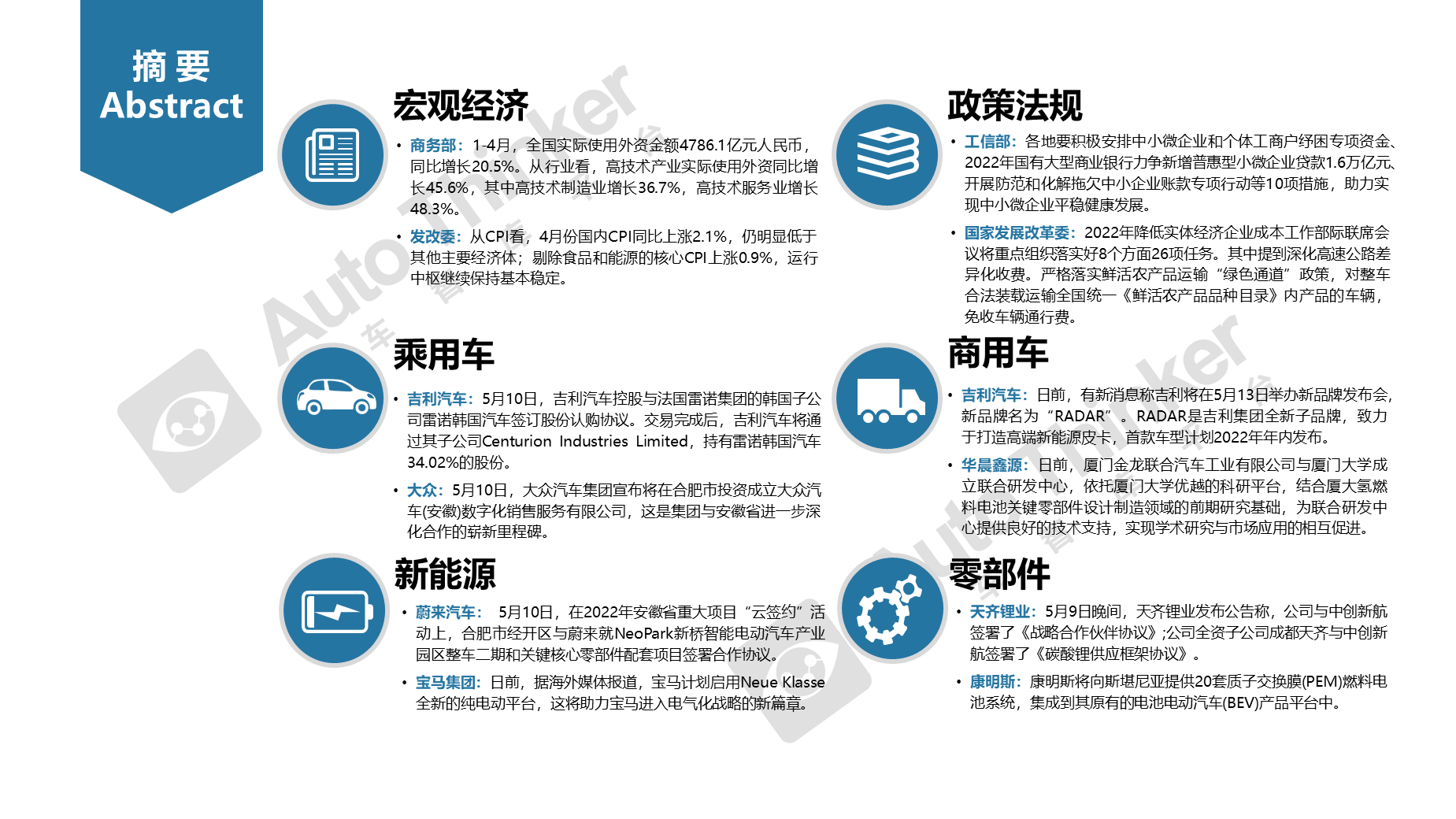 【科瑞咨询】中国汽车产业调查总第0726期(2022年5月9日-2022年5月15日)