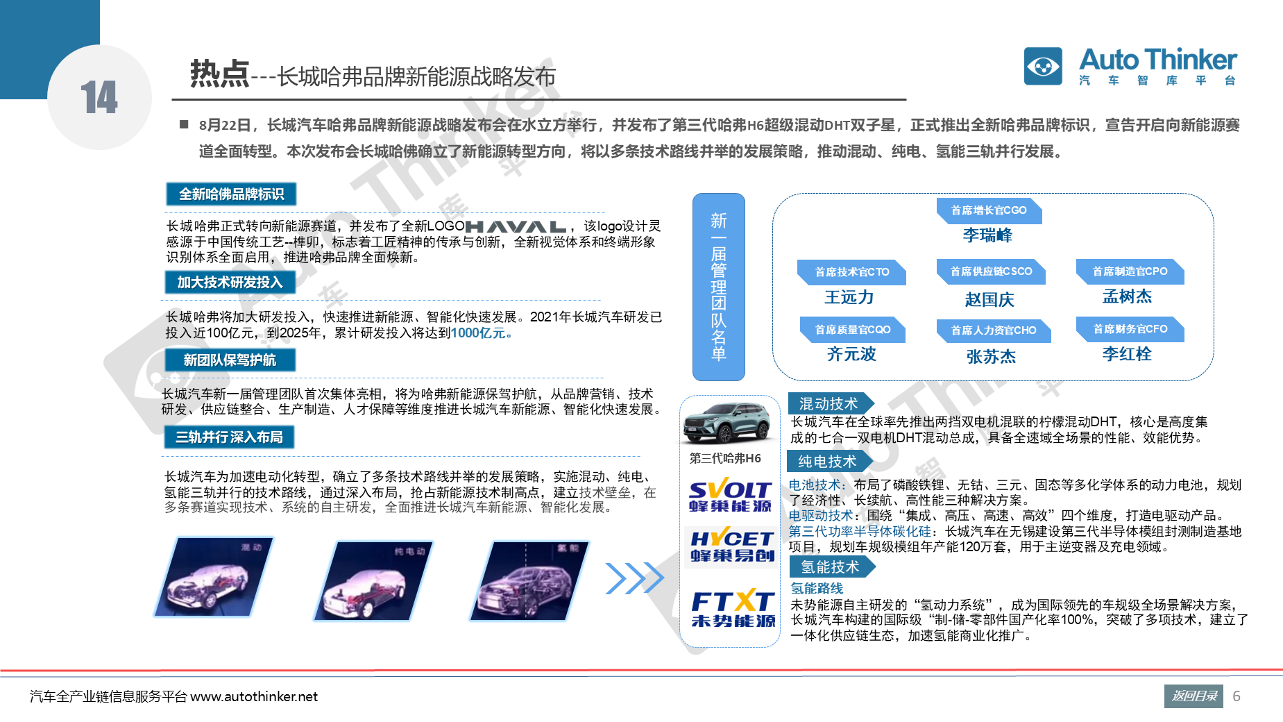 长城汽车:2025年底前,长城汽车将加大研发投入达1000亿元,2030年哈弗品牌正式停售燃油车。