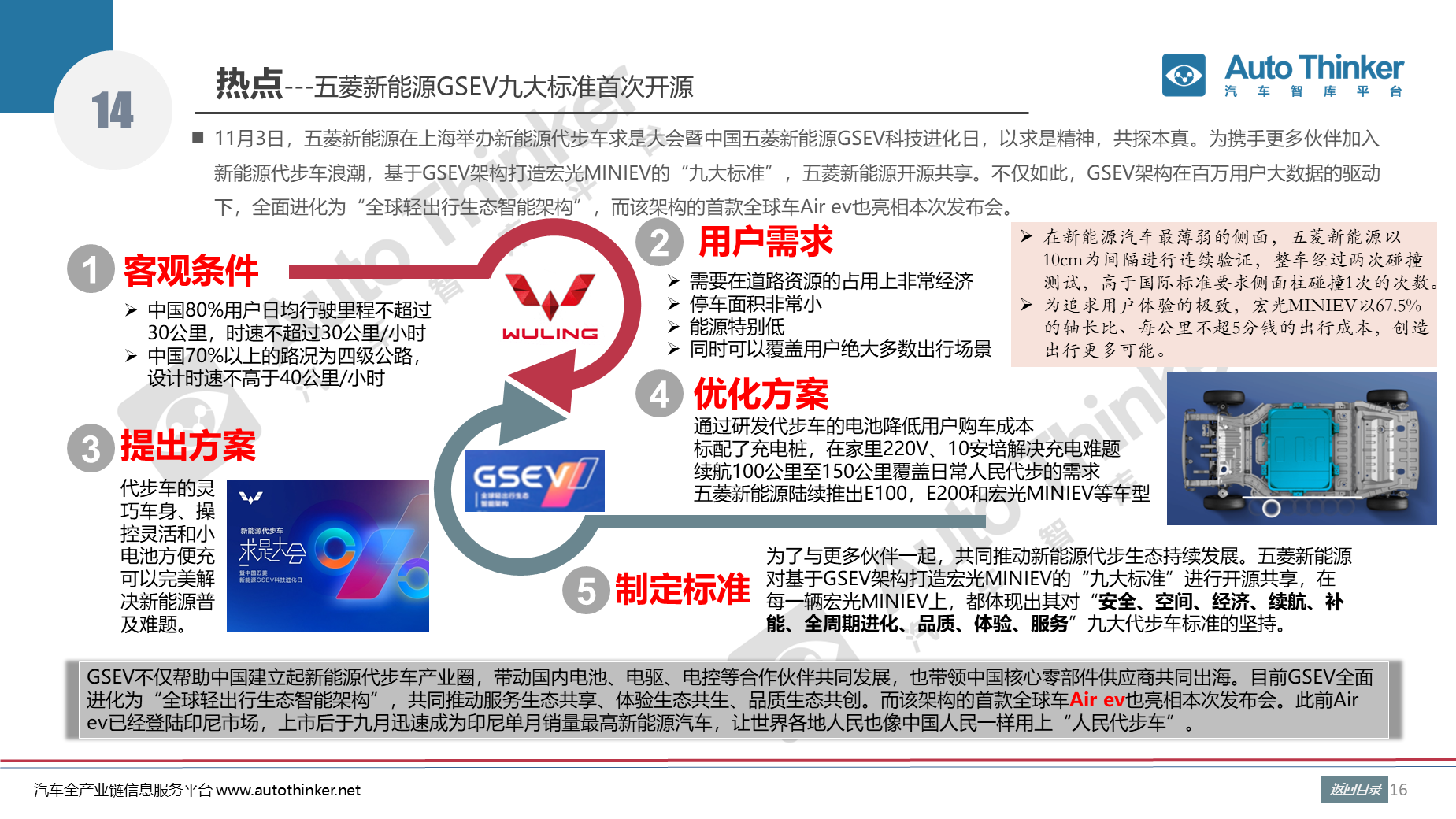 11月3日,五菱新能源在上海举办新能源代步车求是大会暨中国五菱新能源GSEV科技进化日,以求是精神,共探本真。为携手更多伙伴加入新能源代步车浪潮,基于GSEV架构打造宏光MINIEV的“九大标准”,五菱新能源开源共享。不仅如此,GSEV架构在百万用户大数据的驱动下,全面进化为“全球轻出行生态智能架构”,而该架构的首款全球车Air ev也亮相本次发布会。