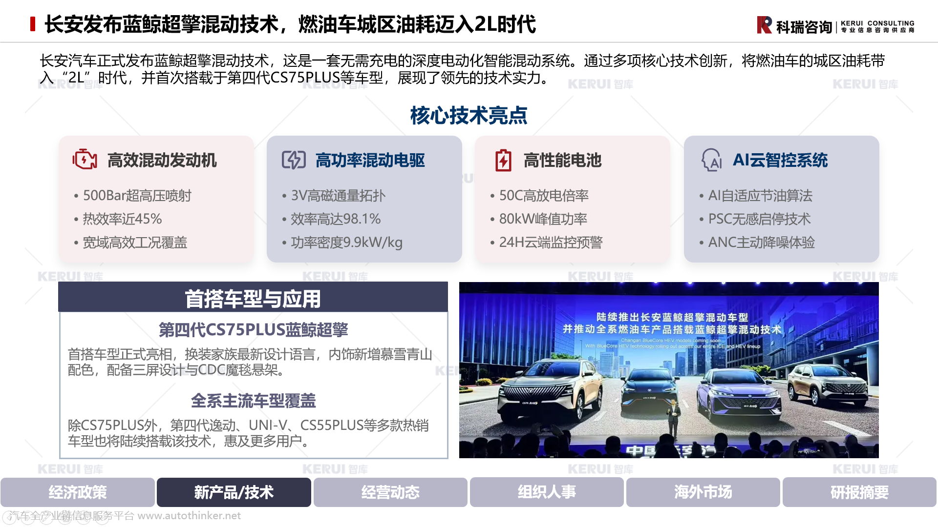 长安汽车正式发布蓝鲸超擎混动技术,这是一套无需充电的深度电动化智能混动系统。通过多项核心技术创新,将燃油车的城区油耗带入“2L”时代,并首次搭载于第四代CS75PLUS等车型,展现了领先的技术实力。