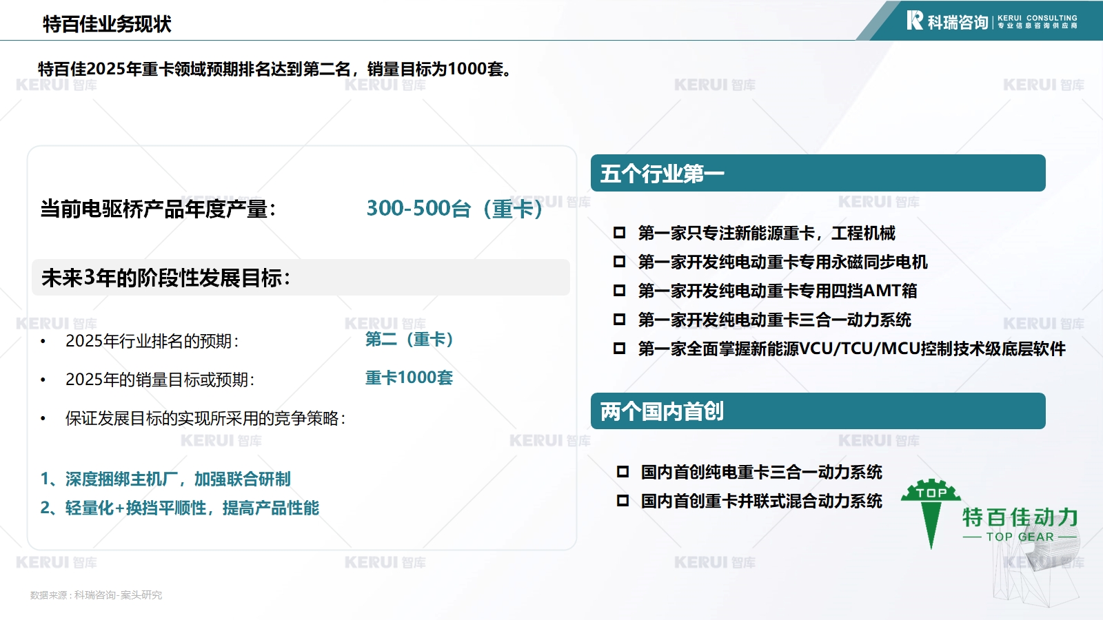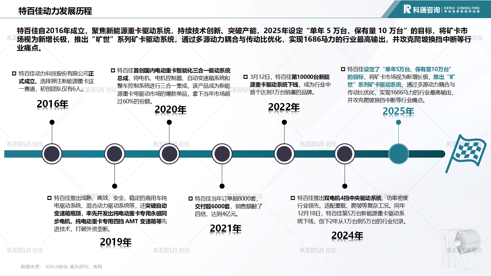 特百佳动力自2016年成立,聚焦新能源重卡驱动系统,持续技术创新、突破产能,2025年设定“单年 5 万台、保有量 10 万台”的目标,将矿卡市场视为新增长极,推出“旷世”系列矿卡驱动系统,通过多源动力耦合与传动比优化,实现1686马力的行业最高输出,并攻克爬坡换挡中断等行业痛点。展开