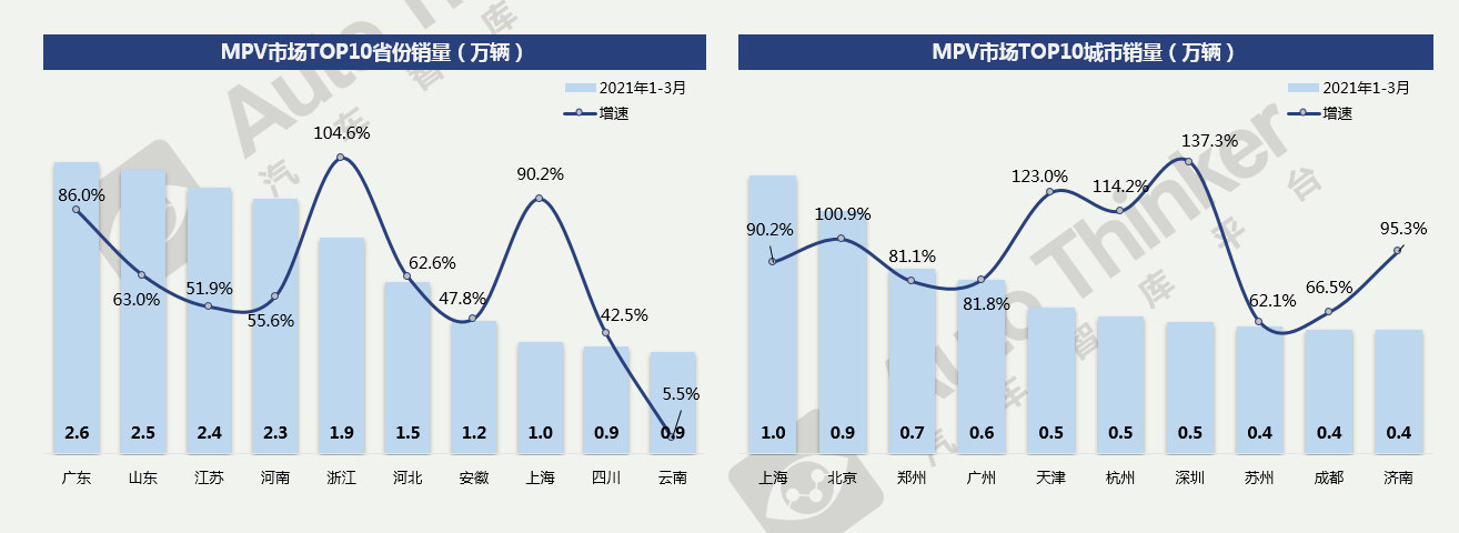 2021年3月,MPV销量为9.3万辆,比2020年同期增长104.3%,比2019年同期下降38.7%,环比增长102.2%。