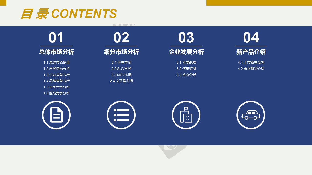 销量月报中国乘用车产业调查研究报告-市场研究月报,重点关注乘用车市场运行现状、企业发展,对轿车、SUV、MPV和微客及其细分市场的竞争格局、市场特征、产品结构等维度进行研究分析。