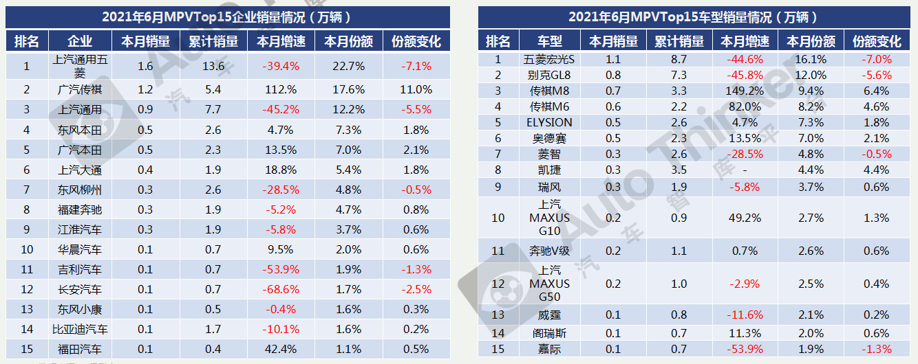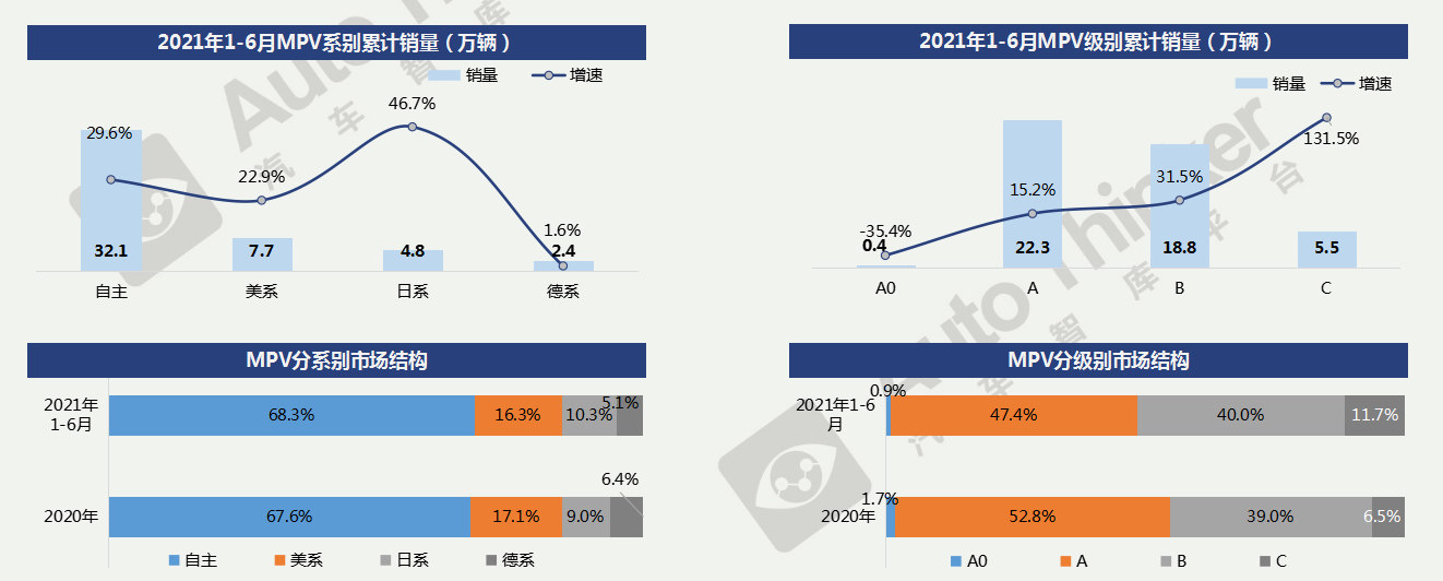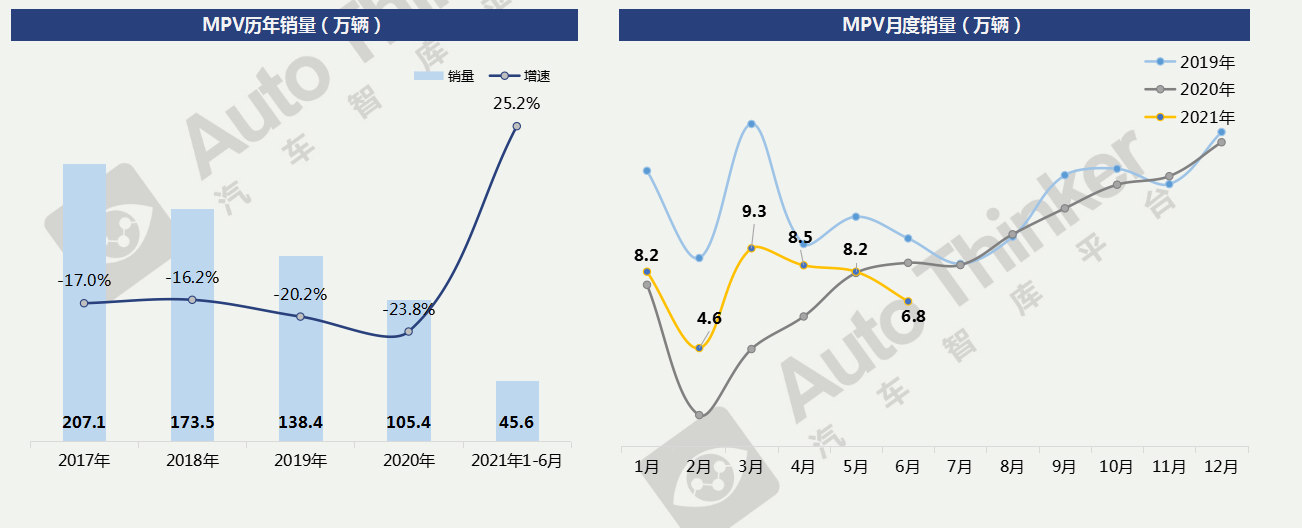 2021年1-6月,MPV累计销售45.6万辆,同比增长25.2。