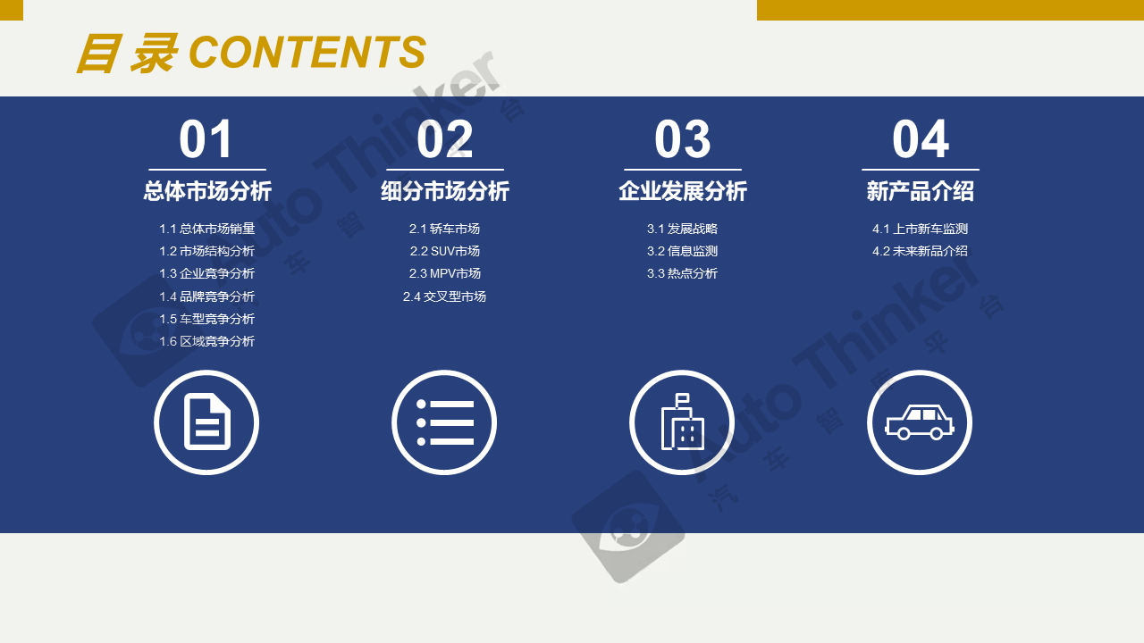 销量月报中国乘用车产业调查研究报告-市场研究月报,重点关注乘用车市场运行现状、企业发展,对轿车、SUV、MPV和微客及其细分市场的竞争格局、市场特征、产品结构等维度进行研究分析。