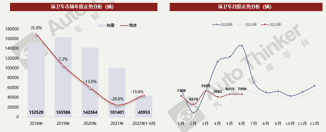 2022年1-6月,环卫车市场累计销售43953辆,同比下降19.8%。