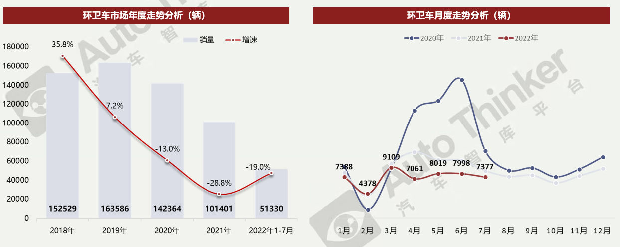2022年1-7月,环卫车市场累计销售51330辆,同比下降19%。