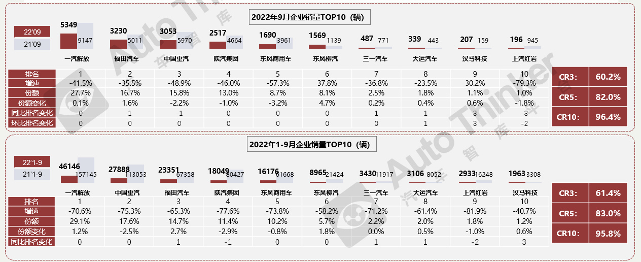 中重卡销量分析报告(2022.9)