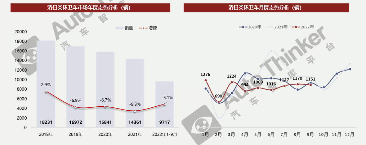 2022年1-9月,清扫类环卫车市场累计销售9717辆,同比下降5.1%。