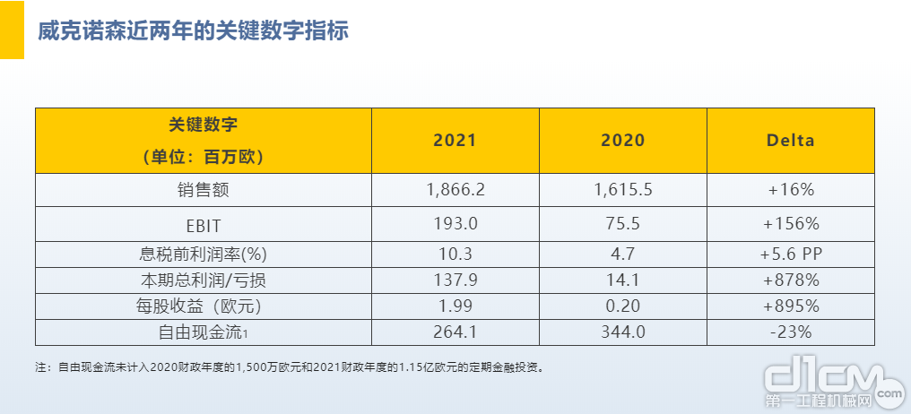 在2021财年,威克诺森集团的业务发展从2020年由COVID-19大流行引发的低迷状态中恢复过来,回到了增长的轨道上。2021年,集团报告的销售额为18.662亿欧元,相对于前一年增长了15.5%(2020年:16.155亿欧元)。