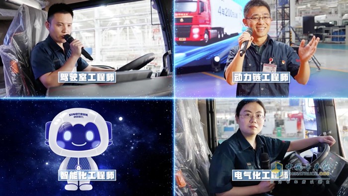 本次直播,中国重汽的驾驶室工程师,动力链工程师,电气化工程师和智能化工程师小汕也来到了现场,他们各显神通,将汕德卡G7S的亮点深入浅出的进行绕车讲解。