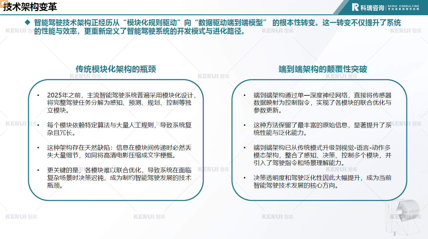 智能驾驶技术架构正经历从“模块化规则驱动”向“数据驱动端到端模型”的根本性转变。这一转变不仅提升了系统的性能与效率,更重新定义了智能驾驶系统的开发模式与进化路径。展开