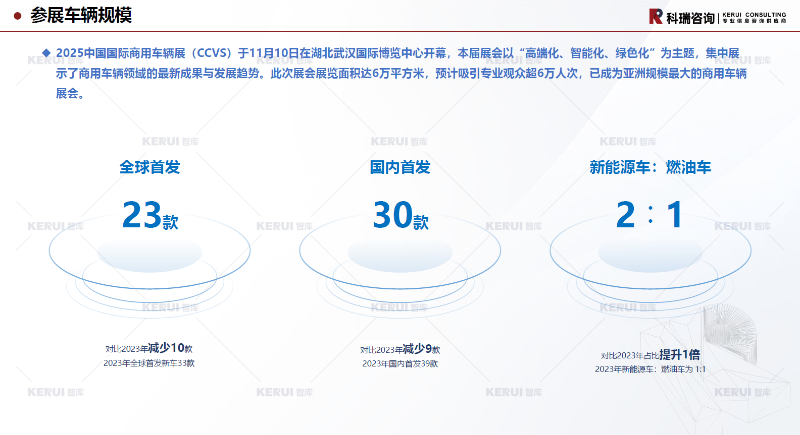 2025中国国际商用车辆展(CCVS)于11月10日在湖北武汉国际博览中心开幕,本届展会以“高端化、智能化、绿色化”为主题,集中展示了商用车辆领域的最新成果与发展趋势。此次展会展览面积达6万平方米,预计吸引专业观众超6万人次,已成为亚洲规模最大的商用车辆展会。展开
