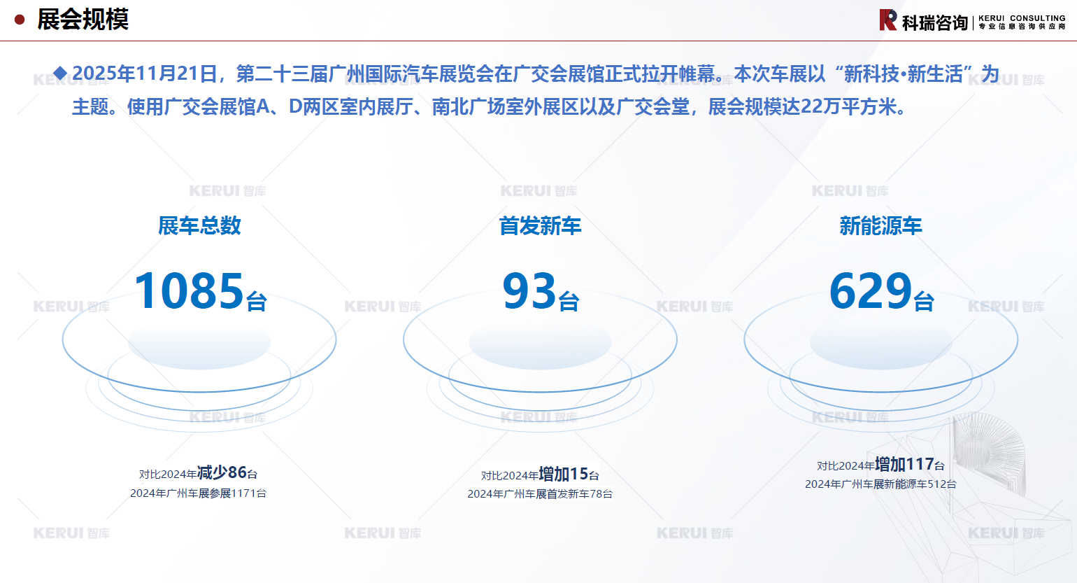 2025年11月21日,第二十三届广州国际汽车展览会在广交会展馆正式拉开帷幕。本次车展以“新科技·新生活”为主题。使用广交会展馆A、D两区室内展厅、南北广场室外展区以及广交会堂,展会规模达22万平方米。展开